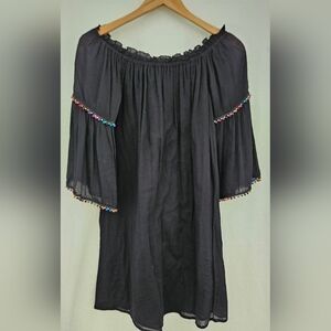 3/$25 Mlle Gabrielle Black Off the Shoulder Boho Dress with Tassels Size Small