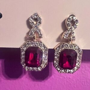 ⭐️3/$25⭐️ NEW White Rhinestone And Ruby Gold Tone Pierced Earrings
