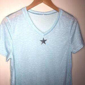 3/$25 🍄 NWOT Women’s Light Blue Metallic Star T-shirt Size Large
