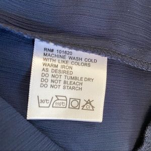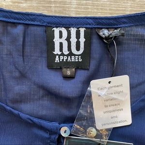 New with tags. Sheer navy blue top by RU Apparel. You’ll want to wear a tank or cami underneath. Loose, flowy fit. Size small. Measurements are shown in pictures. 100% polyester.