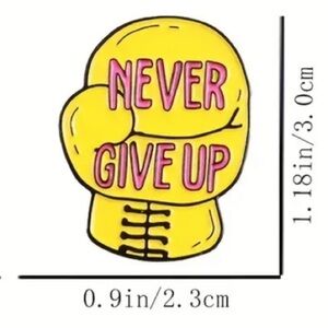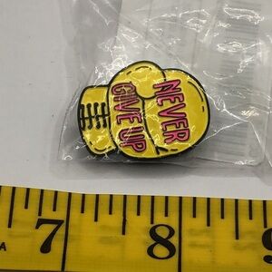 3/$25, 4/$30 “Never give up” yellow boxing glove with pink writing. Metal enamel pin badge brooch. Inspirational saying quote