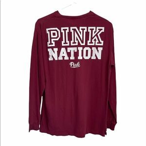 PINK Burgundy Pink Nation Long Sleeves Tee Top