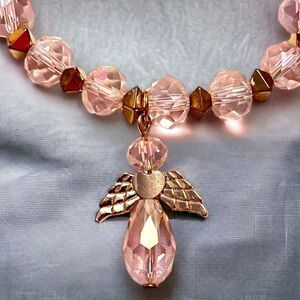 ⭐️3/$25⭐️ Pink Crystal Angel Charm Beaded Stretch Gold Tone Bracelet NWT