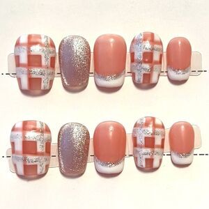 ⭐️3/$25⭐️ Pink and Silver Hand Made Nail Art Press On Nails Size Small