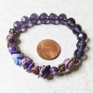๐๐๐ 3/$25!!! Purple Semi-Precious Stone & Glass Beads Bracelet 6-6.5"