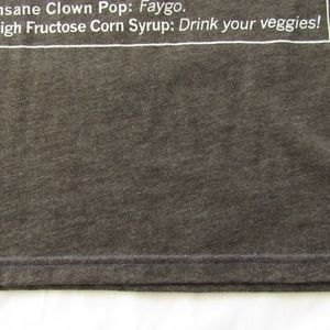 Raygun Midwest "Pop" Definition Tee Shirt. Dark Gray with White Lettering. In Good Condition. Different, Blue Stitching on the Bottom Seam.