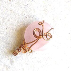 ๐๐๐ 3/$25! Rose Quartz Coin! Small + Feminine Wire Wrapped Pendant