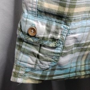 multi colored cargo shorts by Roxy. Worn maybe twice. So cute and very comfy. Just in time for Summer! Smoke free home. I do have cats, but all clothes come cleaned/dry cleaned and free of any pet hair
