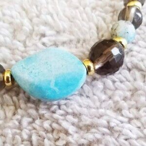 🍂🍁🍃 3/$25! Smoky Gray Crystal + Aqua Jasper Boho Bracelet 7"