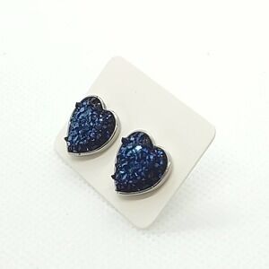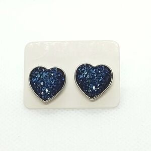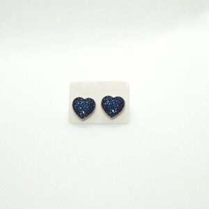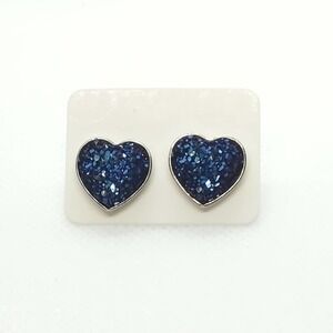 3/$25 Sparkle Earrings Navy Heart Shaped Druzy EARRING Sparkle BLUE NEW