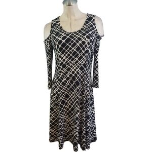 3/$25 Susan Graver Size XS Black White Cold Shoulder Dress