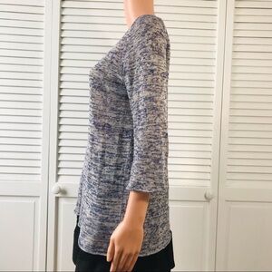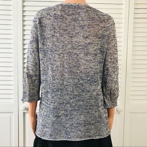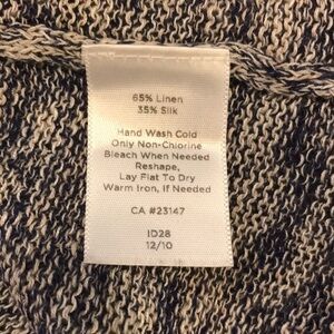 Details: Talbots blue and white linen and silk blend 3/4 sleeve v-neck semi sheer sweater
