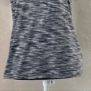 Short sleeve v neck tee. Semi fitted. Black/gray/white space dye print. GUC, minimal wear