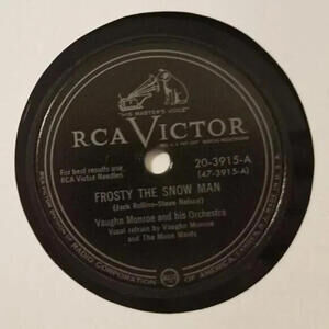 Vaughn Monroe 78 RPM record, Frosty The Snow Man vinyl, RCA Victor 20-3915, vintage Christmas record, collectible holiday vinyl, tested 78 RPM, nostalgic RCA record, Could Be Vaughn Monroe, classic holiday music, big band Christmas record