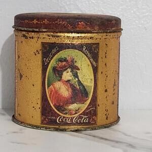 vintage Coca Cola tin, Coca Cola collectible can, retro Coke container, Coca Cola tin can, Coke memorabilia, Coca Cola advertising tin, classic Coke can tin, small Coca Cola storage box, nostalgic Coke decor, vintage soda tin