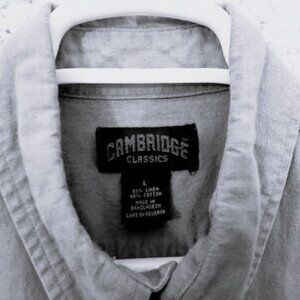 ๐ 3/$25 ๐Vtg Cambridge Classics Men's Button Up Shirt Cream White Linen Blend