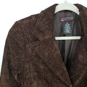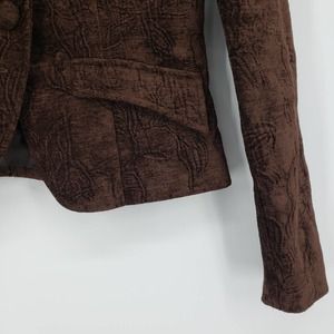 3/$25 Y2K Hot Kiss Velvet Blazer Jacket Floral Embossed Long Sleeve Brown