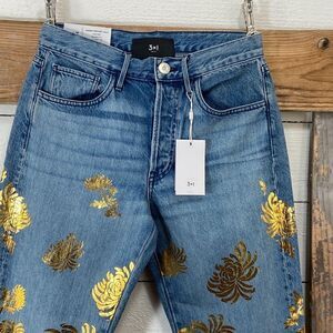 3X1 N.Y.C. EVA W3 NWT Higher Ground Crop Gold Floral High Rise Relaxed Fit Straight Leg Crop Inseam Made in the USA using the worlds finest denim 🙂 W3CBM0866-EVA