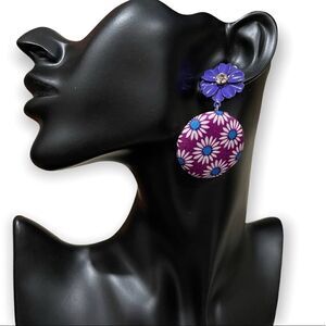3/$25❗️Flower Fabric Button Dangle Earrings