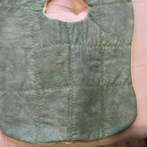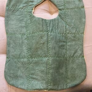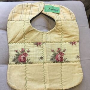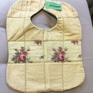 Brand new. Hand crafted from all new 100% cotton fabrics; made in a smoke free home. Soft yellow florals, plaids and prints reverses to a green batik. Fits most babies thru 18 months. Velcro fastener. A great hand crafted gift!