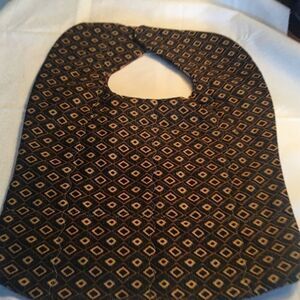 Black, tans, golds and brown batik prints on front reverses to Black and Tan geometric print. Handmade, quilted made of all new 100% cotton fabric with Velcro fastener; made in a smoke free home. Fits most babies through 18 months. Great baby shower gift. Quilted with love.