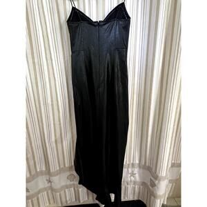 $326 Amanda Uprichard Symone Dress Black Faux Leather Strapless High Low Gown
