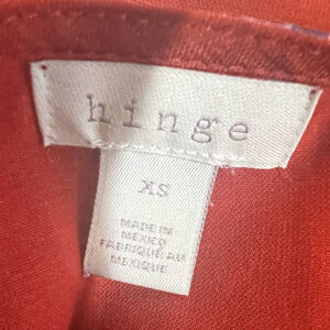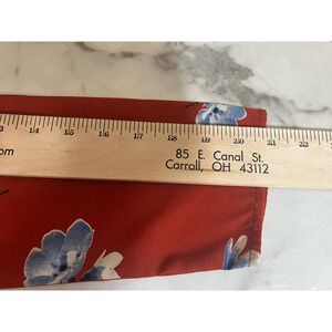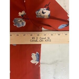 Hinge blouse features a V-Neckline and forgiving front pleat. Pair this burnt orange with blue flowers blouse with white or indigo jeans and heels for a perfect fall look. See pictures for approximate measurements, material & care details. Item is preowned but in great shape and without flaws.