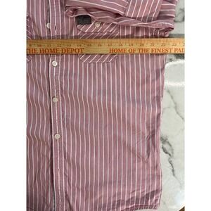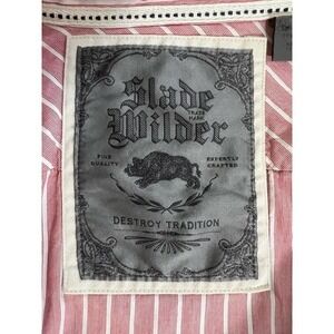 This Slade Wilder button down top features long sleeves, 2 button cuffs, an open neckline and breast pockets. Shirt has narrow pinstripes in red and white. Shirt pairs nicely with chinos or jeans. See pictures for approximate measurements, material & care details. Item is preowned but in great shape and without flaws.