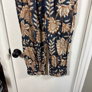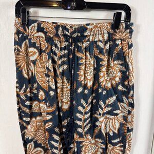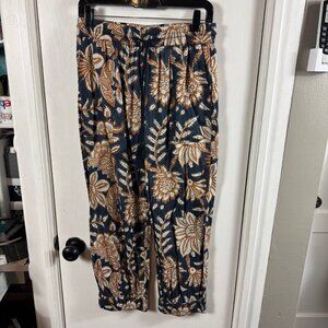 Lightweight non-stretch weave Floral print Covered elastic waist with drawstring Slant hip pockets Size small Shell: 100% cotton