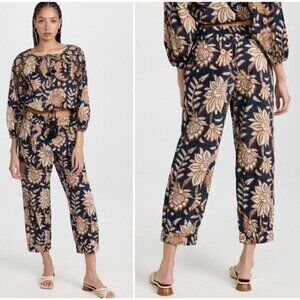 $328 Figue Noa Pant Batik Floral Midnight Navy Printed Cotton