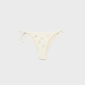 328. MANGO MNG Pale Yellow Metallic Embellished String Bikini $106 NWOT Small