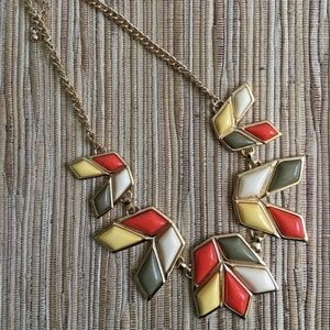 3/$29! Geometric Orange Yellow Olive Bib Necklace