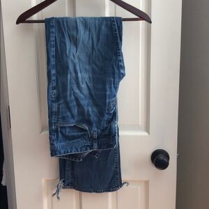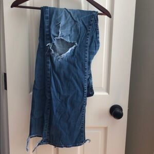Distressed - Preloved, one ripped knee and fray torn bottoms