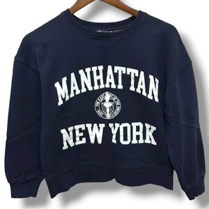 329 ZARA | EUC $98 Morocco Manhattan New York Navy Graphic Sweatshirt (Size S)