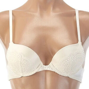 32B Maidenform Lacy Demi Coverage Push-Up UW Bra Ivory NWT