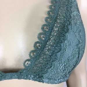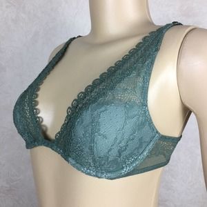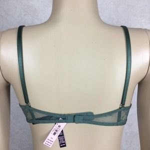 Are you tired of feeling like your boobs are hiding in plain sight? Well, it's time to let those babies out to play with this green lace bra! With a plunging neckline that goes deeper than your ex's commitment issues, this bra will have you feeling like a seductive forest nymph in no time. Made by Victoria's Secret, it also includes straps that can be converted to cross the back for that special shirt you never wear. And don't worry about any pre-loved bra drama - this one is brand spanking new with tags, ready to be worn by a lucky size 32C. So go ahead and add some leafy green to your lingerie collection - because who needs a garden when you can have a bra that makes your boobs bloom?