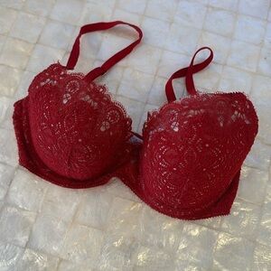 32D Victoria’s Secret Dream Angels lined Demi red lace bra nude delicate