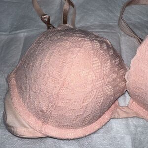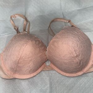 32D Victoria's Secret Push-Up Coral Lace Floral Covered Bra-