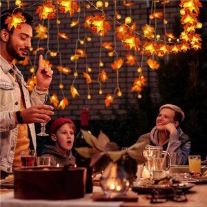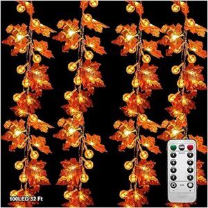 32Ft Fall Decor Lighted Maple Leaf Garlands Thanksgiving Halloween Fall