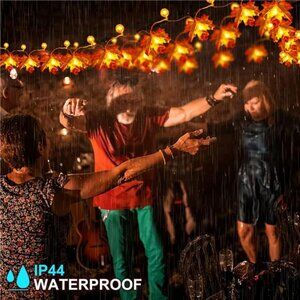 【IP44 Waterproof for Outdoor】: A unique LED string lights on the market. Different from others, our Maple Leaf Pumpkin Light String is the only one on that can reach IP64 waterproof, which can be easily used in indoor or outdoor scenes, also make it much safer for outdoor use. The waterproof level of other maple-leaf pumpkin lights can only reach the daily waterproof function, and it is not safe for outdoor use.