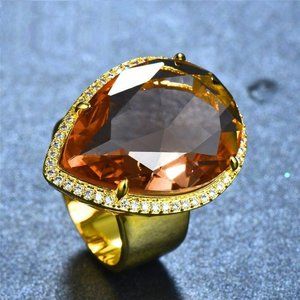 A stunning 32mm pear cut orange champagne water drop gold ring is the perfect addition to any outfit. Show off your individual style with this unique and elegant piece of jewelry.