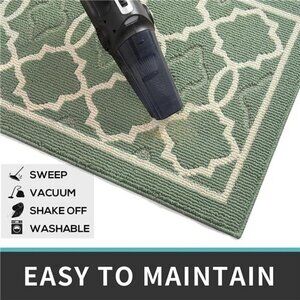 32"x20" Non-Slip Low-Profile Entrance Rug, Machine Washable Doormat Green