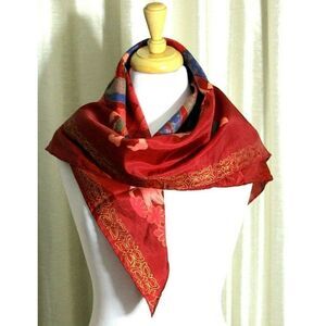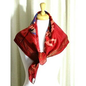 32"x33" RED HANDPAINTED ARTWORK 100%SILK HANDROLLED SCARF SHAWL WRAP