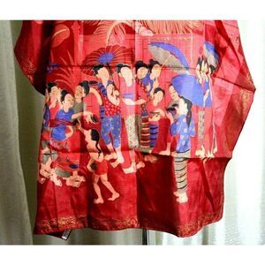 AWESOME RED HANDPAINTED ARTWORK 100% SILK HANDROLLED