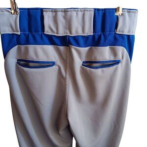 These vintage baseball pants feature a classic design with blue stripes and durable fabric. They provide comfort and style for any baseball enthusiast or collector. The button closure ensures a secure fit, while the reinforced stitching offers durability for long-lasting wear.