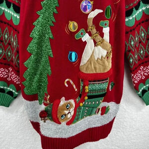 33 Degrees Womens 3XL Merry Bright Christmas Ugly Sweater Cat Boots Embellished Holiday