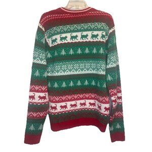 33 Degrees Cat Ugly Christmas Sweater Faux Fur Cat Wearing Glasses Sz L Party