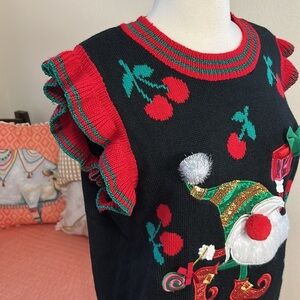 EUC funny whimsical 33 Degrees Christmas Gnome Cherry Gift Ugly Christmas capped sleeve Sweater size Large