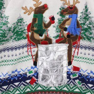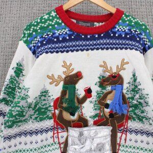 33 Degrees Christmas Sweater Mens XL Multicolor Knit Deers Drinking Embroidered