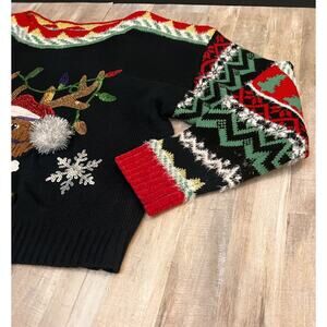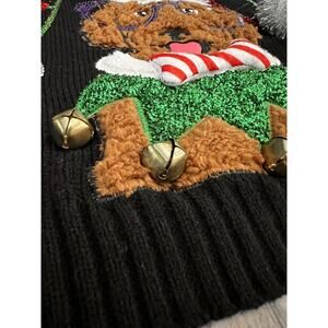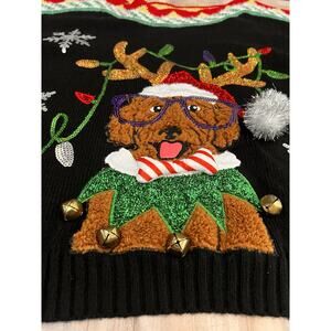 33 Degrees Christmas Sweater Women Med Black Red Dog Graphic Ugly Sweater Jingle